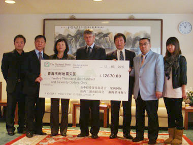 中新網5月12日電 據中國外交部網站消息,5月3日,新西蘭新中貿易促進會、新西蘭湖南聯誼會、湘閣里辣餐廳、梁楓國際共同舉辦慈善晚會,為青海玉樹地震募集了12,670新元的捐款。