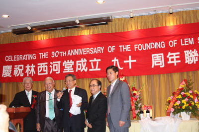 林西河堂系多倫多歷史悠久的華僑華人社團,今年正值該社團成立九十周年。當晚出席成立晚會的有多倫多華聯總會名譽主席伍卓生、全加華人促進中國統一委員會(大多倫多區)主席詹文義、大多倫多中華文化中心主席張明達、多倫多市議員李振光、凱利,列治文山市議員陳志輝以及舊金山市、溫哥華市林西河堂代表、各界僑胞共500多人。