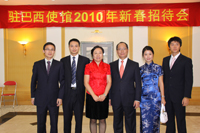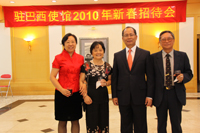 邱大使發表了熱情洋溢的新春賀辭。他說,2009年是中華人民共和國喜迎60華誕,各項事業取得新成就的一年。在這一年里,中國積極穩妥地應對國際金融危機的沖擊,實現經濟總體回升向好,為拉動世界經濟復蘇作出重要貢獻。人民生活持續改善,社會保持和諧穩定。中國更加積極、自信地參與國際事務,在維護國家主權、安全和發展利益的同時,為推動建立更加公正合理的國際政治經濟秩序發揮了重要作用,國際地位和影響力空前提高。與此同時,中國與巴西關系快速發展,務實合作取得豐碩成果,雙邊關系越來越具有全球性和戰略性影響。