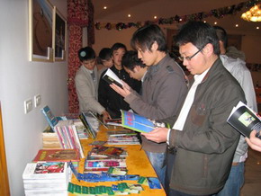 聯歡會放映了國慶60周年大閱兵精彩片段,全體再次感受那威武雄壯的時代脈搏,共同祝愿祖國更加繁榮強盛。使館青年館員與留學生們交流了在利生活的感觸和體會,介紹了在使館工作的心得。會場一隅的書報展臺前,留學生們手捧豐富多彩的中文報刊,讀得津津有味,當聽說今后使館將為留學生中文閱讀、收看CCTV節目提供幫助時,同學們更是歡欣鼓舞。