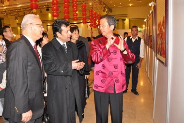 在占地近千平米的展廳內,分別布置了春節民俗、中國樂器、圖書和茶藝等展品,展現了中國文化的博大精深。開羅的中餐館廚師還向來賓展示了美味的中國小吃。