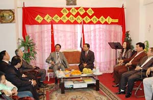 2010年2月8日,駐埃及大使武春華在董滿意參贊的陪同下走訪在埃華人華僑團體,了解華人華僑的工作和生活情況,并向他們送去新春的問候與祝福。