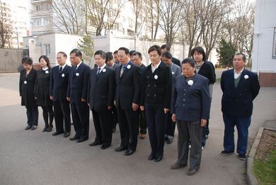 2010年4月21日清晨,中國駐白俄羅斯使館臨時代辦陳代文率使館全體館員沉痛悼念青海玉樹地震遇難同胞。