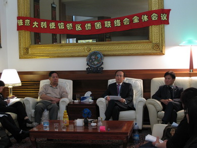 丁大使肯定了僑團聯絡會機制創辦1年多來取得的成績,希望大家繼續以此為平臺,進一步加強溝通,共享信息,統籌力量,在引導旅意僑胞提高素質,守法經營、和諧融入和參政議政等方面發揮更大作用。