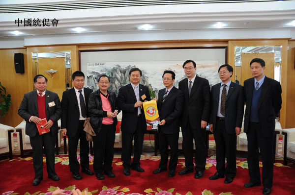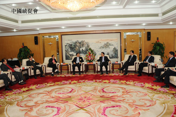 全國人大常委會副委員長、中國和平統一促進會副會長陳昌智(右)與訪問團團長蔡武璋(左)
