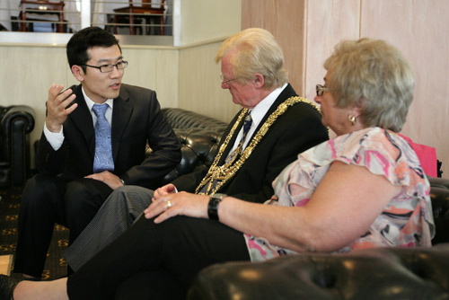 英國華夏文化協會會長貝學賢率副秘書長兼教育部部長李鵬,新聞部副部長張博等一行出席了會見。貝會長對新任市長Councillor Geoff Wells表示了衷心的祝賀,他說道,“希望英國新任政府繼續從戰略高度和長遠角度把握兩國關系,并真心的祝愿中英兩國在未來的合作發展上道路平順。同時也愿意盡自己最大的努力與英國各級政府及民間各大社團共同努力,進一步深化各領域的務實合作!