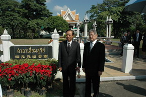 2010年11月21日,駐泰國(guó)大使管木率20余名館員出席泰國(guó)著名抗日僑領(lǐng)蟻光炎先生殉難71周年紀(jì)念活動(dòng),沉痛悼念并深切緬懷他為中國(guó)抗日斗爭(zhēng)做出的卓越貢獻(xiàn)。管大使向蟻光炎先生墓敬獻(xiàn)花圈,并對(duì)其家人致以親切慰問(wèn)。當(dāng)?shù)刂饕獌S領(lǐng)出席了活動(dòng)。