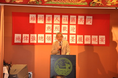 2011年3月2日和7日,維州華人社團(tuán)聯(lián)合會(huì)和以墨爾本洪門民治黨為首的維州華人中國(guó)國(guó)慶籌委會(huì)分別召集籌辦了大型晚宴,熱烈歡迎施偉強(qiáng)總領(lǐng)事履新。墨華人華僑、留學(xué)生代表等近700人參加。維州議員林美豐,市議員王宗堅(jiān)、雷示人、蔣天麟,前市長(zhǎng)蘇震西,州長(zhǎng)華人事務(wù)顧問廖嬋娥等官員應(yīng)邀出席活動(dòng)。
