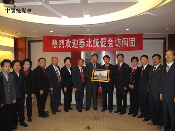 訪問團(tuán)向中國統(tǒng)促會贈送紀(jì)念品