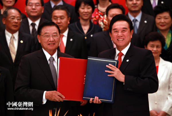 海峽兩岸關系協會會長陳云林與臺灣海峽交流基金會董事長江丙坤29日下午在重慶簽署了《海峽兩岸經濟合作框架協議》。