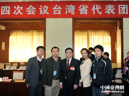 胡有清代表與中國臺灣網記者董潔、王偉,海峽之聲王宗磊、鄔耀華合影。