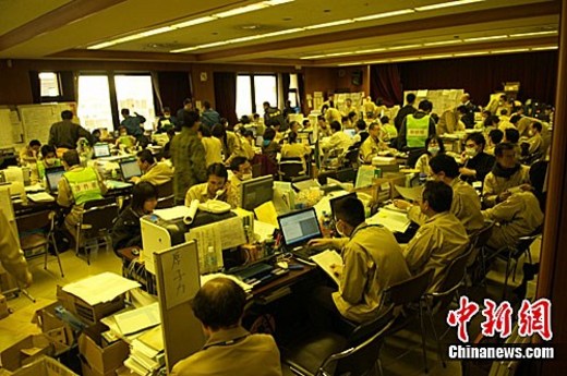 3月29日,福島第一核電站的核泄漏事件持續(xù)升級,圖為福島市災(zāi)害對策本部工作人員忙碌的景象。中新社發(fā) 孫冉 攝