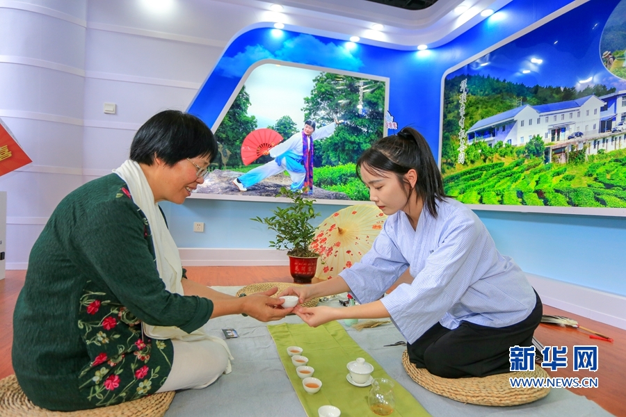 6月14日,茶文化體驗(yàn)館,茶藝師表演傳統(tǒng)茶席文化項(xiàng)目。新華網(wǎng) 肖和勇 攝