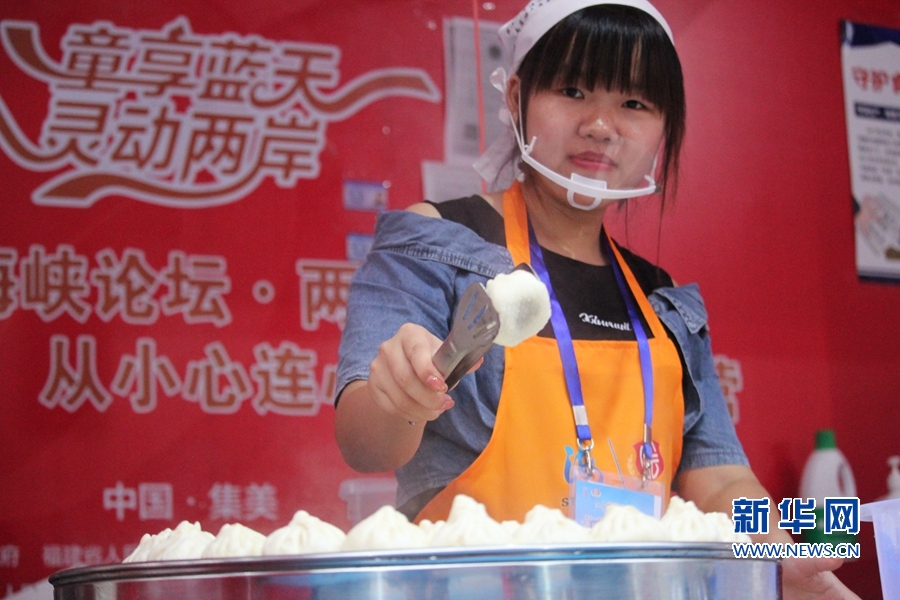 兩岸特色廟會上,來自臺灣和閩南地區的小吃品種繁多。皮薄餡大的包子剛剛新鮮出爐。新華網 劉默涵 攝