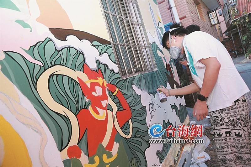 截至6日,各隊(duì)涂鴉都已雛形初顯,有些進(jìn)度快的隊(duì)伍,畫作已完成了一半。在這條原本就文藝氣息濃郁的老街,選手們就像變奏曲,在巷弄間愉快地穿梭忙碌,也引來大社居民和游客們的好奇圍觀。