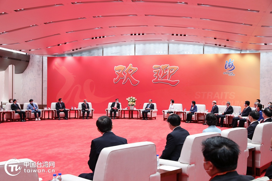 論壇開幕前,汪洋會見了參加論壇的臺灣嘉賓代表。(中國臺灣網 尹賽楠 攝)