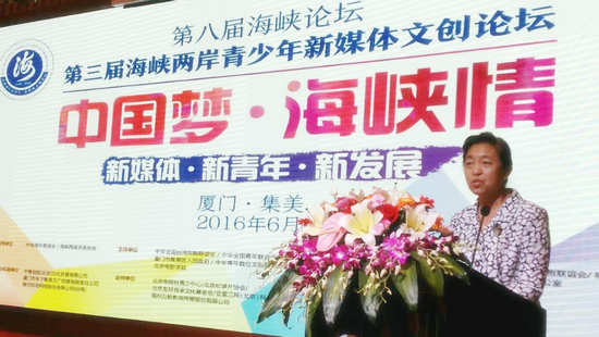 蘇輝指出,全國臺聯十幾年來一直堅持舉辦各種形式的青年交流活動,希望兩岸的年輕人對彼此有更多的了解。現在,兩岸關系走到了一個新的階段,我們迎來了更多的挑戰和機遇。在兩岸交流合作、創新發展的背景下,以“中國夢·海峽情”“新媒體·新青年·新發展”為主題舉辦海峽兩岸青少年新媒體文創論壇,能為兩岸青少年的交流交往和相互了解增添更多更適合兩岸青少年特點的平臺。相信通過兩岸青年的通力合作,可以大幅度提高兩岸青少年的新媒體創作水平和文化創新能力。進一步提高兩岸新媒體行業在世界上的競爭力,更可以一起向世界弘揚中華文化。