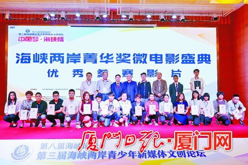 主辦方還為上一屆海峽兩岸青少年新媒體文創論壇評選出的“海峽兩岸青年創新創業大賽菁華獎”優秀項目和“海峽兩岸菁華獎微電影盛典”優秀參賽影片頒獎。