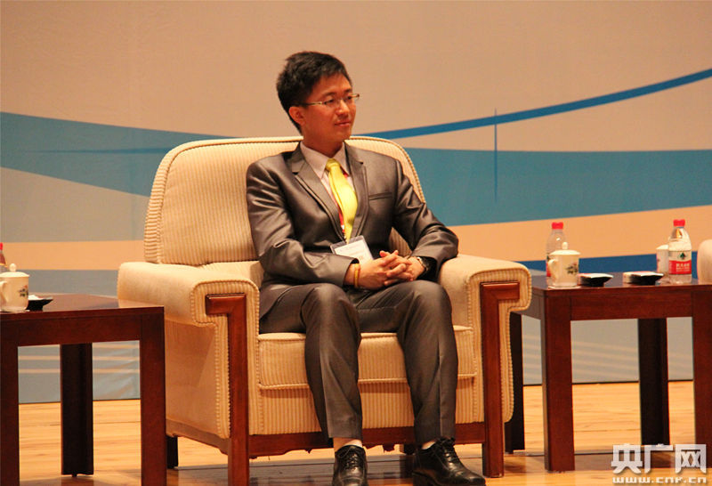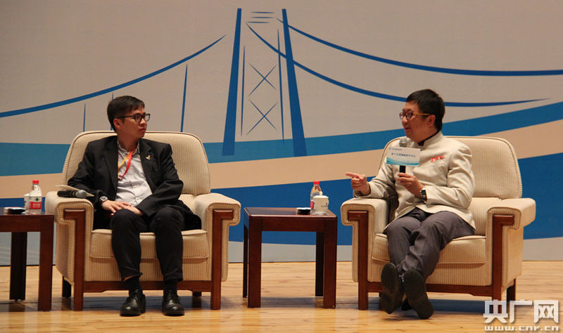 臺灣新黨新思維主任候漢廷在開幕式上表示,可以在兩岸交流溝通時融入影視、娛樂、文化等,真正讓兩岸青年結合到一起。同時他表示,希望兩岸可以通過互聯網進行更多的良性交流。(央廣網記者 劉一荻 攝)