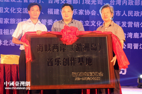 福建省音樂家協會副主席、秘書長唐曉燕與湄洲島管委會主任唐炳椿簽訂聯辦“海峽兩岸(湄洲島)音樂創作基地”協議。福建省文聯黨組書記、副主席張作興和福建省文聯主席章紹同授予湄洲島“海峽西岸(湄洲島)音樂創作基地”牌匾,湄洲島管委會主任唐炳椿接牌。