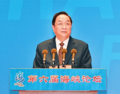15日,中共中央政治局常委、全國政協主席俞正聲在第六屆海峽論壇開幕式上致辭。本報記者 張永定 攝