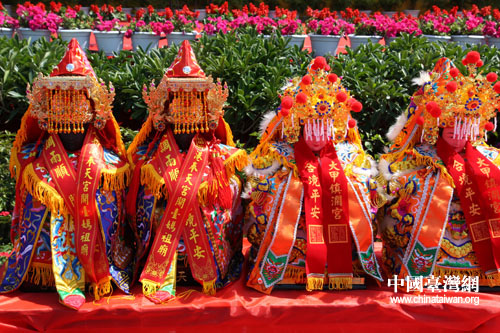 臺灣媽祖信眾直航湄洲進香團抵達湄洲,圖為進香團護送的四尊媽祖神像。(中國臺灣網記者 張弛 攝)