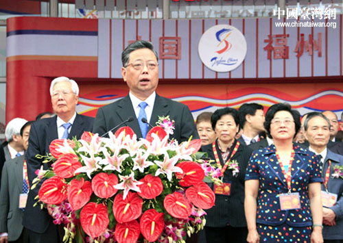 18日,福建省省長(zhǎng)在第十一屆海峽兩岸經(jīng)貿(mào)交易會(huì)開(kāi)幕式上致辭。當(dāng)天上午,第十一屆海峽兩岸經(jīng)貿(mào)交易會(huì)(簡(jiǎn)稱“海交會(huì)”)在福州開(kāi)幕。 (中國(guó)臺(tái)灣網(wǎng) 鐘寶華 攝)
