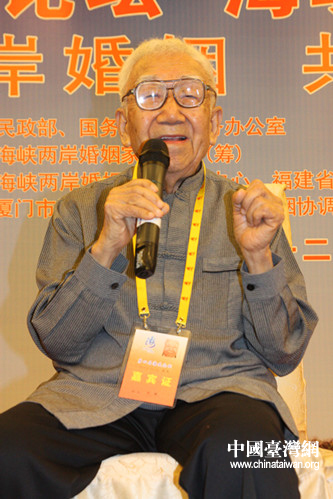 在短短的8分鐘演講中,莊奴老先生多次提到了“緣”這個字,他說這次來到廈門也是緣。最后,他用《彩云追月》填詞表達了對本屆海峽兩岸婚姻家庭論壇的感受,贏得陣陣掌聲。“感謝辦論壇,論壇呀讓我們相聚在廈門,我們呀感到好興奮,海內存知己,天涯若比鄰,兩岸的同胞一家親,親愛的好兄弟好姐妹,手牽手心連心,感恩大中華,媲美日月心,團結起全球的中國人。”