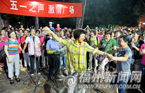 16日晚,參加第五屆海峽兩岸合唱節(jié)的多支臺(tái)灣合唱團(tuán)與福州數(shù)支激情廣場(chǎng)合唱隊(duì)伍相聚在溫泉公園、五一廣場(chǎng)等地。
