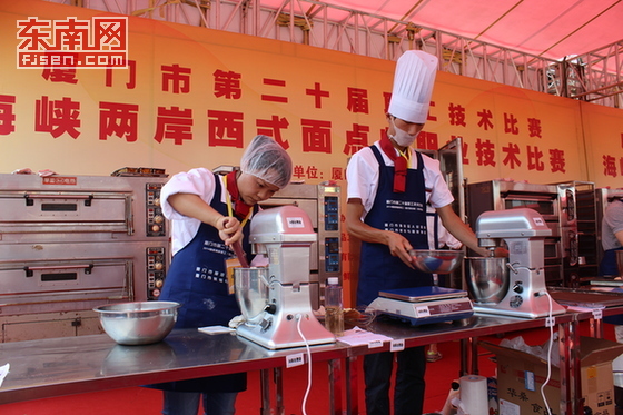 東南網6月13日廈門訊(本網記者 鄒玒 通訊員 王星樂)咖啡的香氣彌漫在初夏的陽光里,加上甜品的美妙滋味,才有夏日的活力四射。今天上午,在廈門海滄區舉行的廈門第二十屆職工技術比賽暨海峽兩岸職工(西式面點師、咖啡師)技術比賽開幕,來自兩岸的西式面點師、咖啡師各顯神通,流暢的手法讓現場觀眾目不暇接。
