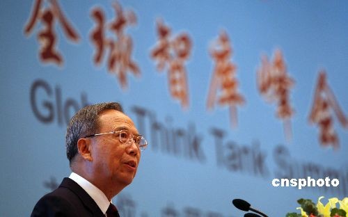 7月3日,全球智庫峰會在北京舉行,來自世界各地的數百位政要、學者、諾貝爾獎得主、全球五百強CEO,就全球金融危機與世界經濟展望的主題進行深入探討,共謀全球發展。圖為中國國際經濟交流中心理事長曾培炎作主題發言。 中新社發 武仲林 攝