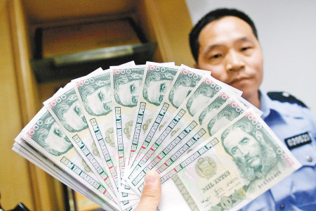 4月22日,警方在咸陽一家招待所將3名犯罪嫌疑人抓獲,從其租住處搜出了面值1000元的秘魯幣185張,面值100元的秘魯幣4張。犯罪嫌疑人交代,今年4月,他們花800元從河南買回來204張秘魯幣用來詐騙。目前,3名犯罪嫌疑人已被警方刑拘。