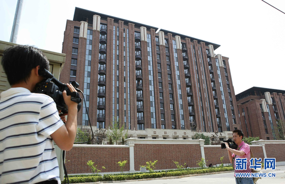 2011年5月25日北京出現單價30萬樓盤5月25日,媒體記者在北京東釣魚臺家園小區門前拍攝采訪。分析人士指出,在嚴厲調控之下,北京豪宅價格逆勢異常高漲,十分值得關注。新華社發(李方宇 攝)