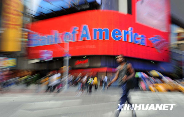 這是2009年9月4日,行人從美國紐約曼哈頓的一家美國銀行外經過。新華社記者谷欣容攝