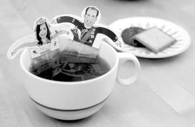 他拿起一個瓷杯。杯子上王子和未婚妻的肖像四周飾以金色花紋,每只瓷杯售價29.95英鎊(約合48.05美元)。