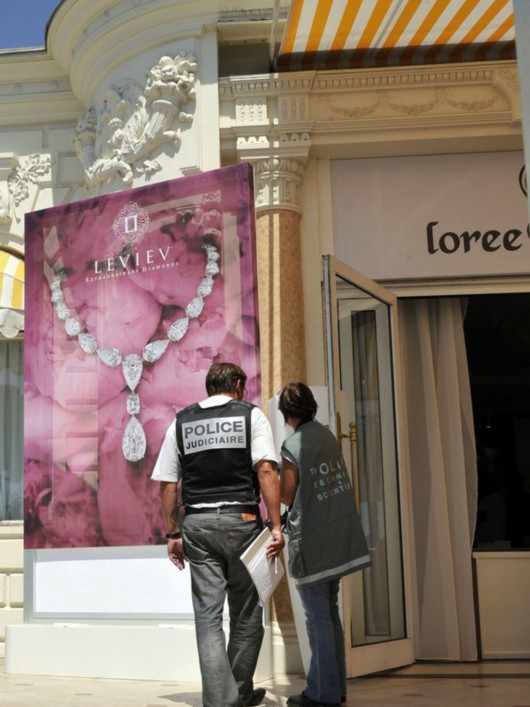 當地時間2013年7月28日,法國戛納一珠寶展遭歹徒搶劫,盜走價值約4000萬歐元的珠寶。