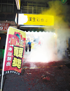 高雄市小港區(qū)漢生彩券行去年7月開(kāi)出9.2億威力彩頭獎(jiǎng),當(dāng)晚放鞭炮慶祝,事后卻傳出誰(shuí)是真正得主的爭(zhēng)議。
