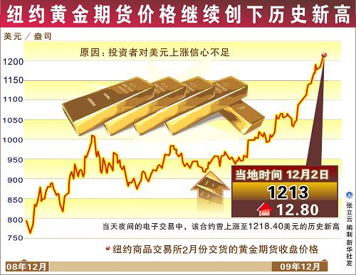 紐約黃金期貨價(jià)格繼續(xù)創(chuàng)下歷史新高