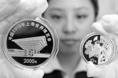 上海世博會第二組彩色金銀紀念幣。新華社發(陳代述攝)