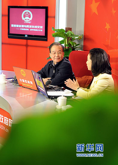2月27日上午,中共中央政治局常委、國務(wù)院總理溫家寶接受中國政府網(wǎng)、新華網(wǎng)聯(lián)合專訪,與廣大網(wǎng)友在線交流。 新華社記者 劉建生 攝