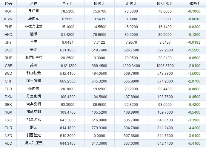 9日人民幣匯率中間價:1美元對人民幣6.34...
