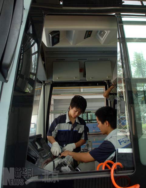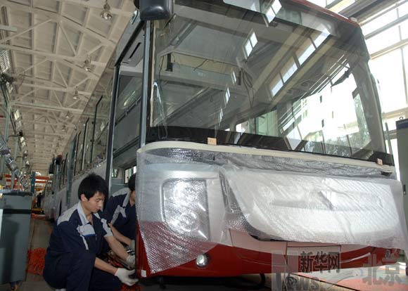 6月20日,工人在歐V混合動(dòng)力客車生產(chǎn)線上工作。 新華社記者公磊 攝