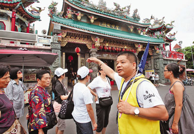 郵輪旅客到臺南標志赤坎樓參觀。(圖片來源:文匯報)
