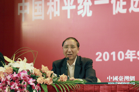 9月24日,中央統戰部副部長、中國和平統一促進會秘書長尤蘭田主持會議,并作最后總結。(中國臺灣網 楊麗 攝)