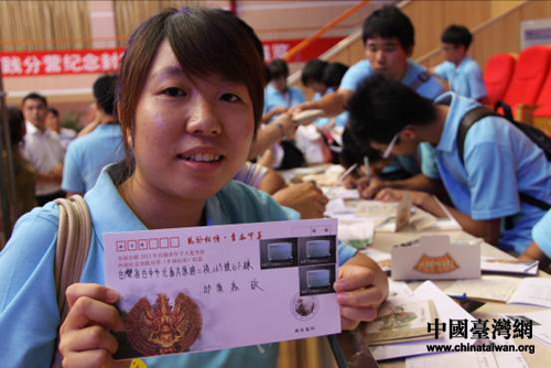 發(fā)行儀式上,平頂山市郵政局向臺灣大學(xué)生們贈送了紀(jì)念封和明信片。大學(xué)生們給遠(yuǎn)在臺灣的家人寫信送祝福、報平安。嘉義大學(xué)學(xué)生蘇于姍一邊在紀(jì)念封上寫著地址,一邊高興地說:“這個活動太有紀(jì)念意義了,想想今天我在平頂山寫信,向親人報平安,等我回到臺灣,信也該到了,多好呀!給家人兩個驚喜。”