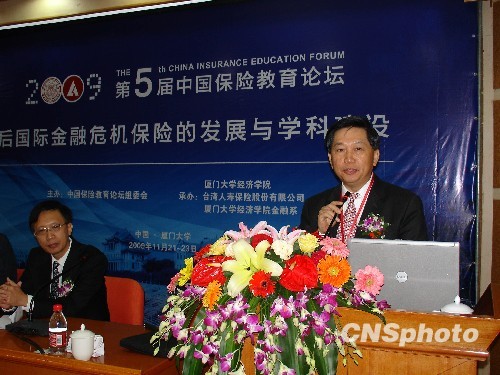 十一月二十一日,臺灣人壽保險股份有限公司董事長朱炳昱在廈門表示,在兩岸銀行、證券、保險等合作方面,保險領域領先一步,取得先行先試的先機,但壽險業(yè)面臨一些亟待解決的議題,盼望能早日透過ECFA(兩岸經(jīng)濟合作框架協(xié)議)的簽署最終加以解決。當天,第五屆中國保險教育論壇在廈門舉辦。 中新社發(fā) 楊伏山 攝
