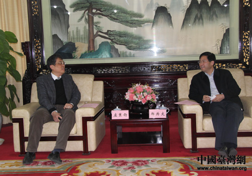 中國臺灣網2月22日馬鞍山消息 日前,安徽馬鞍山市委書記鄭為文、市長張曉麟分別會見了臺灣電機電子工業同業公會大陸首席代表、副秘書長莊秉鈞一行,就在馬鞍山市合作舉辦皖臺(兩岸)電子產品展會等事宜進行了友好洽談。安徽省臺辦主任朱德祥參加會見。