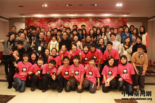 1月24日晚,由宋慶齡基金會主辦的“情漫海峽·愛聚兩岸”青年學生大聯歡活動在北京舉行。圖為基金會領導與文教團師生的合影。(中國臺灣網 孟雅詩 攝)