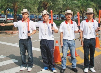 來自福建省漳州職業(yè)技術(shù)學(xué)院的林少瑋、王智鵬、陳志榮、陳燦鑫,來臺(tái)讀大學(xué),最近加入“交通服務(wù)隊(duì)”社團(tuán),經(jīng)過1周訓(xùn)練,實(shí)際站上路口。