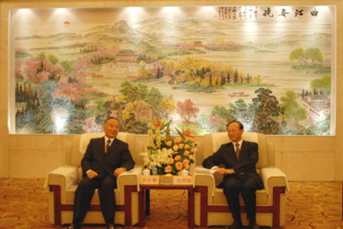 中新網4月19日電 據國家旅游局網站消息,4月15日,2011中國國內旅游交易會期間,國家旅游局局長、海峽兩岸旅游交流協會會長邵琪偉在西安會見了臺灣觀光協會會長周慶雄一行。雙方就進一步加強兩岸旅游交流合作,特別是加強旅游產業化合作等交換了意見。